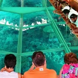 Geniessen Sie eine Fahrt mit Glasbodenboot und lernen Sie die Unterwasserwelt des roten Meeres kennen ohne nasse Füße zu bekommen.Nach ca. 15 Minuten gehen Sie unter Deck an Board des Glasbodenbootes und Sie betreten einen klimatisierten Raum der Ihnen eine ganz besondere Sicht auf tausende von Fischen und wunderschönen Korallen bietet. Ideal für Leute die nicht schnorcheln möchten.